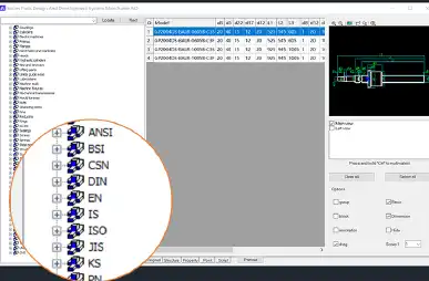 Soporta más de 10 estándares nacionales e internacionales con más de 400,000 piezas estándar. Puede generar vistas de piezas fácilmente seleccionando parámetros.